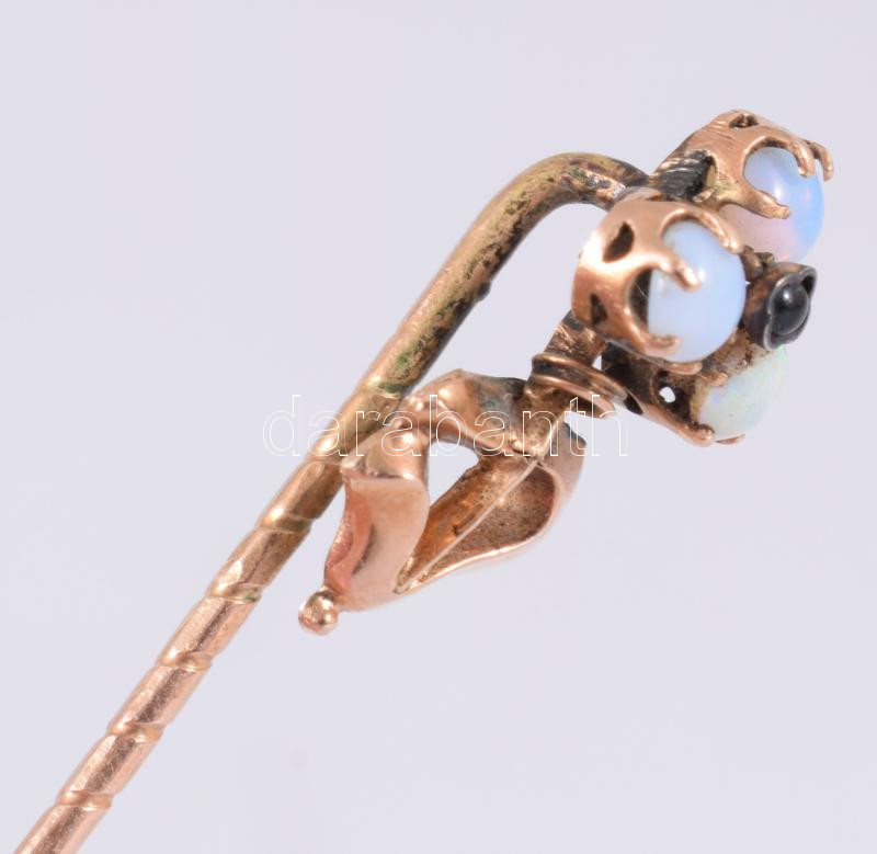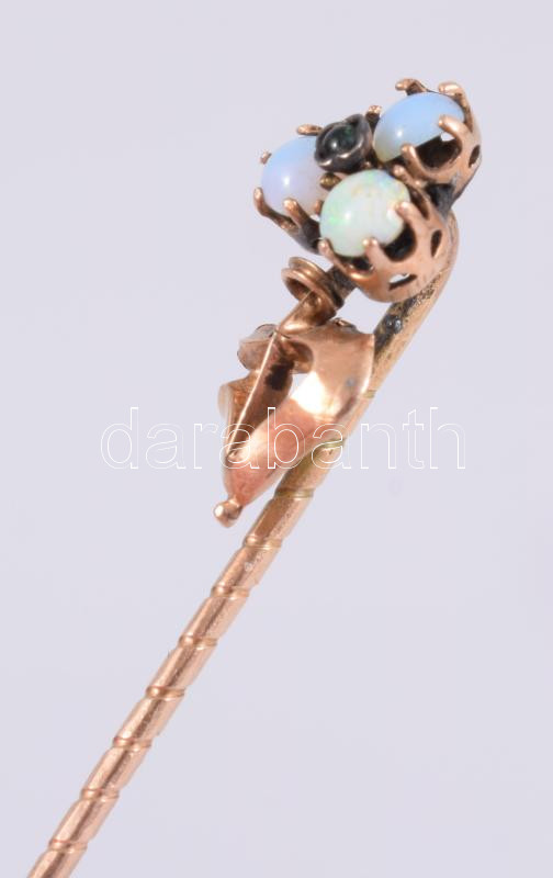 Arany (Au) hajtű, opál berakásokkal, jelzés nélkül, bruttó 1,4g