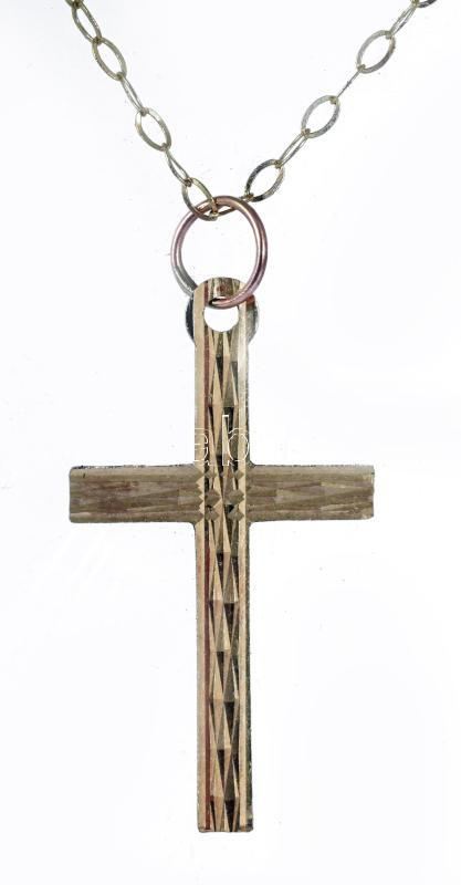 Arany (Au) nyaklánc kereszt medállal, 9K, jelzett, nettó 0,63g
