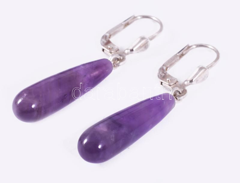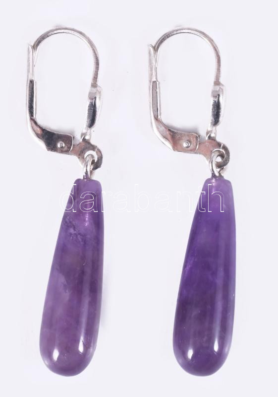 Ezüst (Ag) fülbevaló pár, ametiszt cseppel, jelzett, bruttó 3,1g