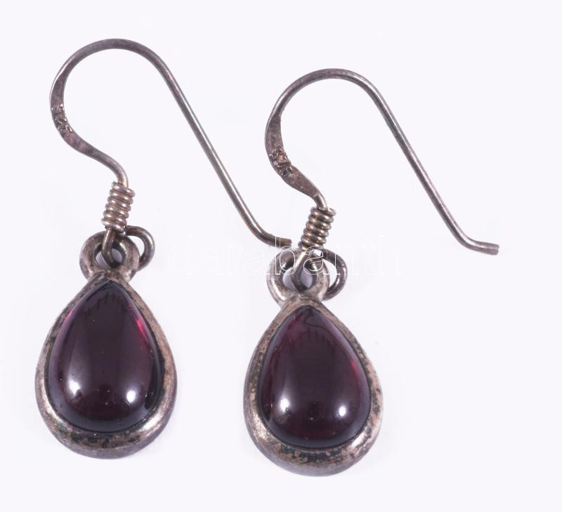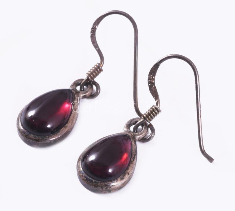 Ezüst (Ag) fülbevaló pár, borostyán berakással, jelzett, bruttó 2,5g