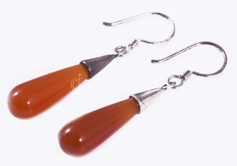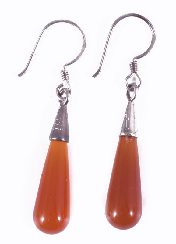 Ezüst (Ag) fülbevaló pár, karneol cseppel, jelzett, bruttó 3,2g