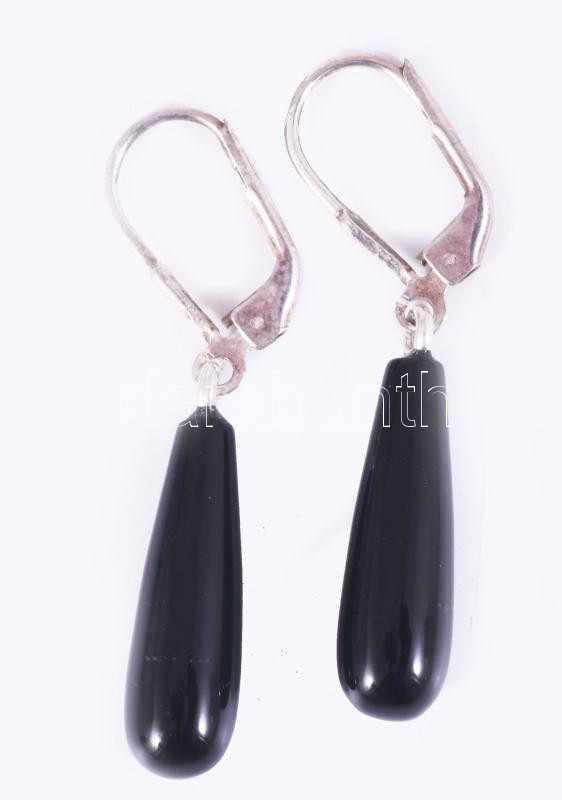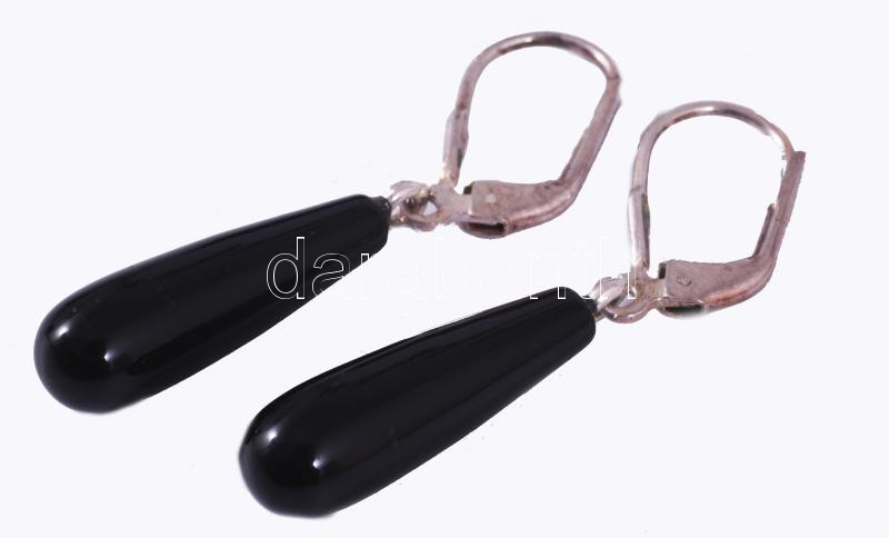 Ezüst (Ag) fülbevaló pár, ónix cseppel, jelzett, bruttó 3,3g
