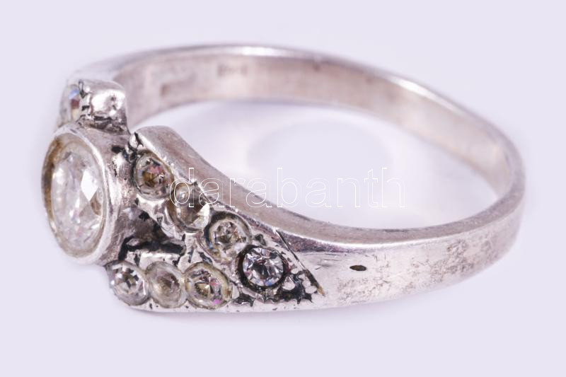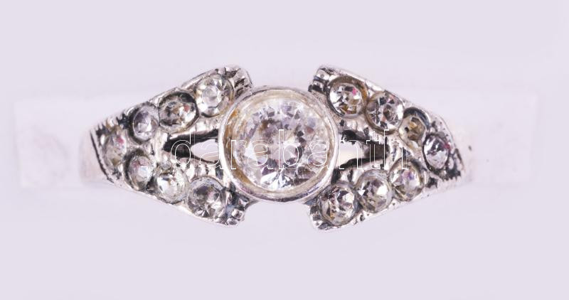 Ezüst (Ag) gyűrű, fehér kövekkel, m:57, jelzett, bruttó 3,5g