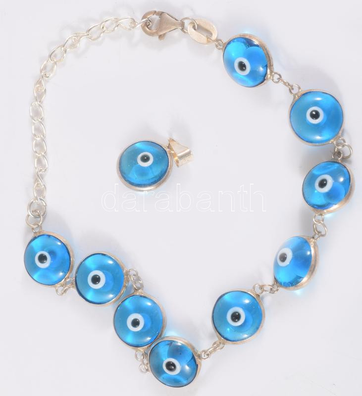 Olasz ezüst karkötő és medál szett, murano gyöngyökkel,, jelzett, bruttó 7,9g