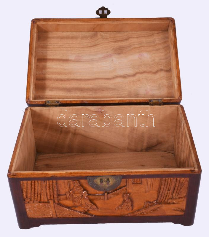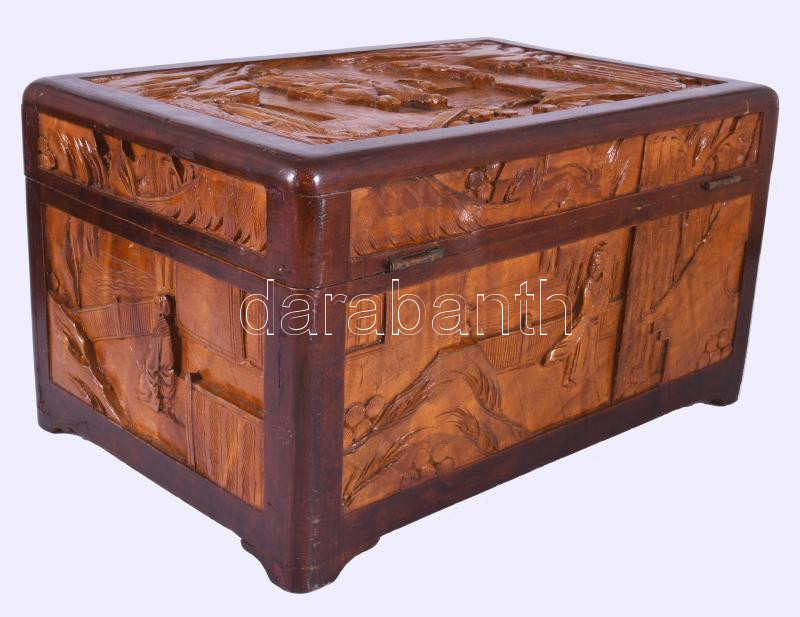 Nagyméretű kínai faragott ébenfa ékszere doboz, 30x20x16 cm