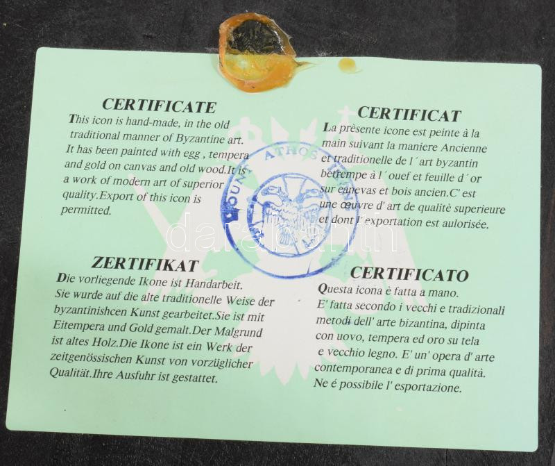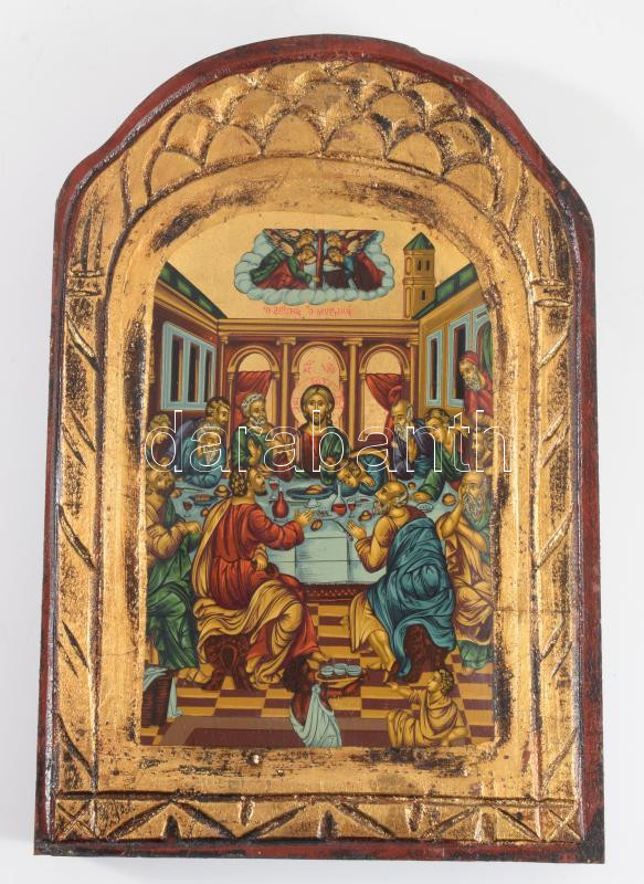 Utolsó vacsora - görög kézzel festett ikon, hátoldalon certifikáttal, 26x18 cm