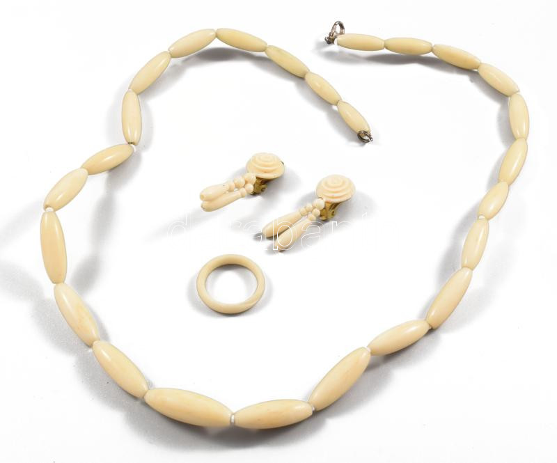 Csont ékszerek és fehér korall (?) nyakék