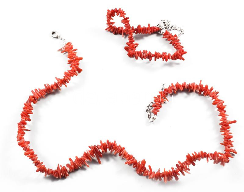 Korall nyaklánc és karkötő, h: 42 cm