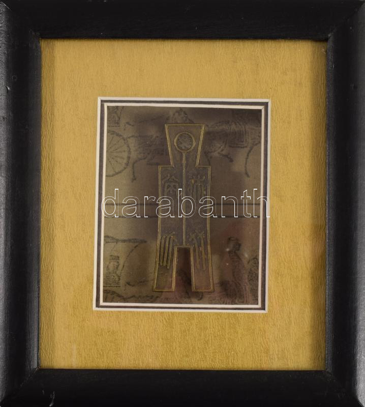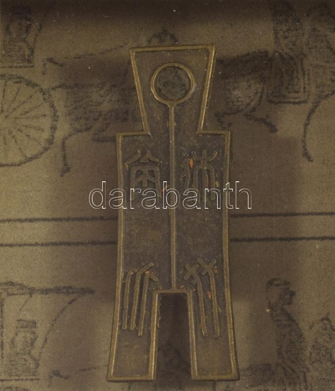 Régi kínai pénz másolat dekoratív keretben, 16x15 cm