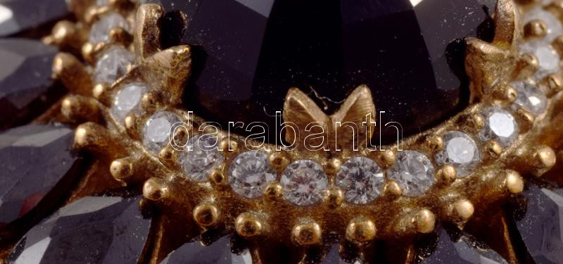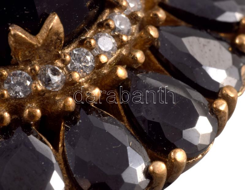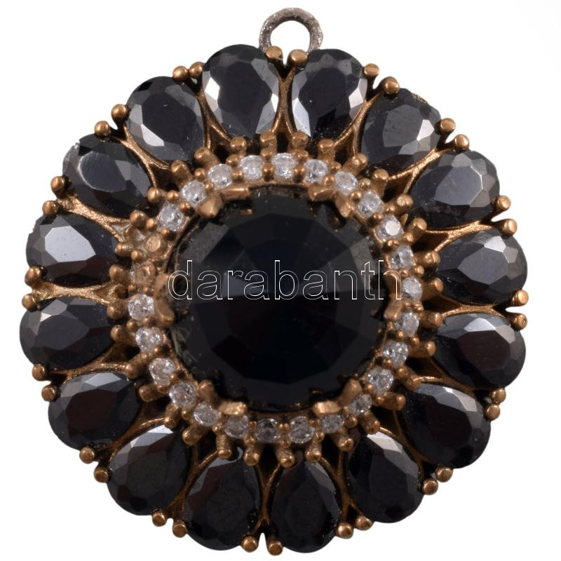 Réz és ezüst (Ag) függő fekete kő berakásokkal, jelzett, d: 3 cm