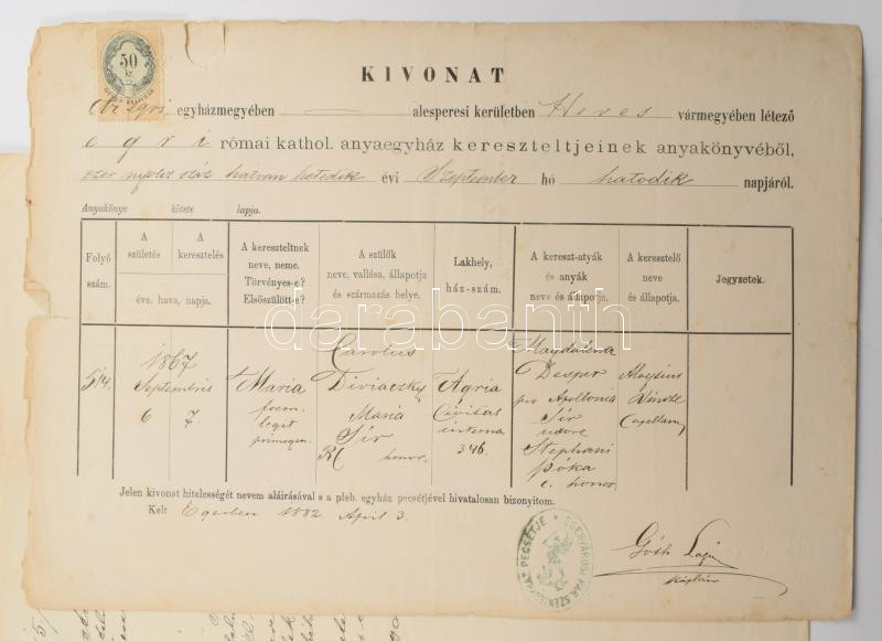 cca 1857-1944 Vegyes papírrégiség tétel, közte a Diviaczky család tagjaihoz fűződő, illetve okmánybélyeges iratok, összesen 14 db