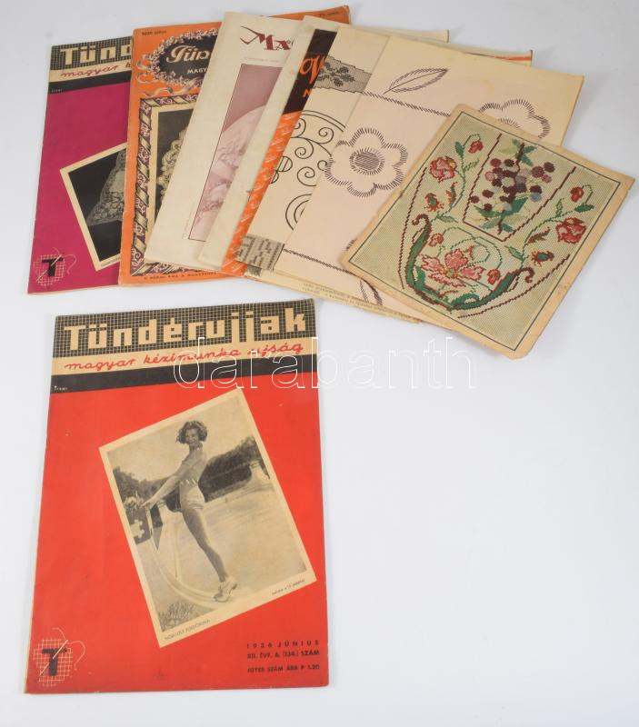 1926-1941 Magyar Nők Lapja III. évf. 20. és 21. számai + Tündérujjak kézimunka újság 3 db száma + Woittitz női divat árjegyzéke 1937 tavasz + kézimunka mellékletek