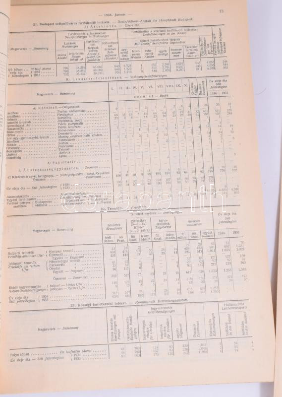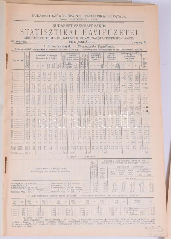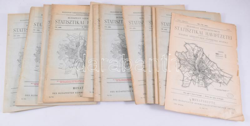 1934 Budapest Székesfőváros Statisztikai Havifüzetei LXII. évf. 709-720. sz. (12 szám + tartalomjegyzék.) Szerk. és kiadja Budapest Székesfőváros Statisztikai Hivatala. Kiadói tűzött papírkötés, vegyes állapotban.