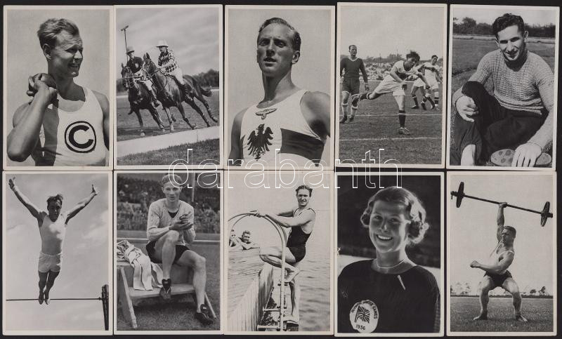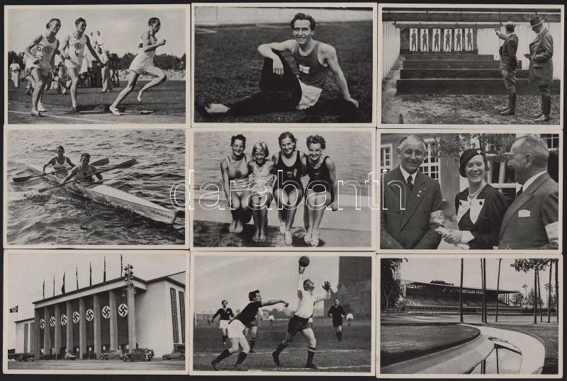 1936 Berlini olimpia gyűjtőképek (Sammelwerk Nr. 14. Olympia 1936 - Band II), összesen 40 db, 9x12 cm Hátoldalán nyomtatott feliratokkal