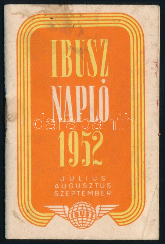 1952 IBUSZ napló július-augusztus-szeptember, benne balatoni utazások információival, tűzött papírkötés, kissé foltos