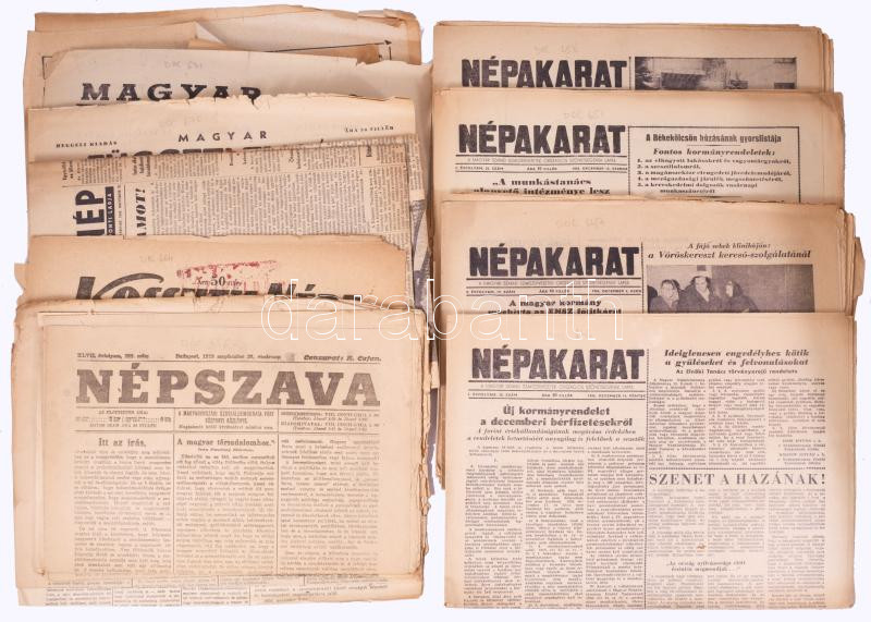 1956 Kb 50 db nagyrészt 1956-os forradalmi eseményekkel és a visszarendeződés hónapjaival foglakozó újság. Klf címek november elejétől nagyrészt decemberig. Jó állapotban