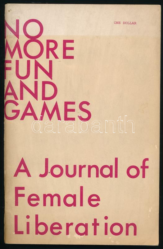 1970 No More Fun and Games. A Journal of Female Liberation. Angol nyelvű feminista folyóirat, kiadói tűzött papírkötés, 128 p.