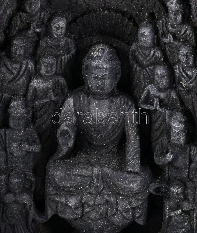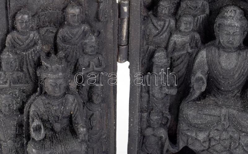 Összecsukható kínai utazó Buddha kegytárgy, rezin, jelzett, m: 16 cm
