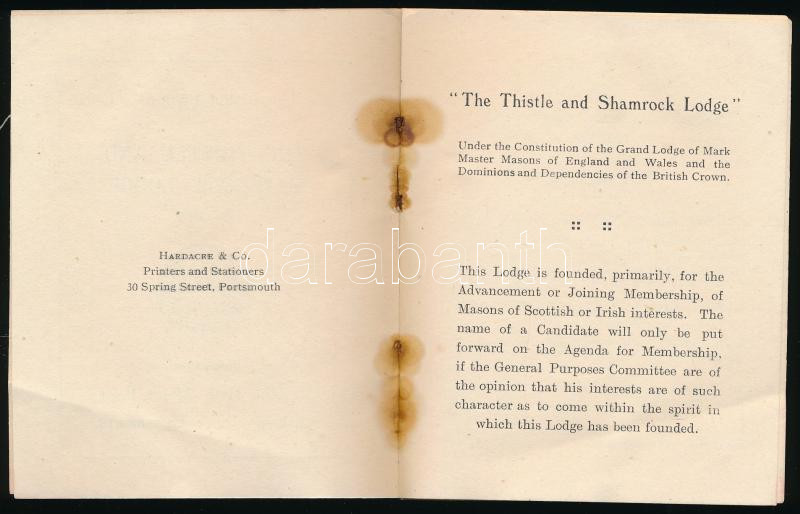 ca 1900 By-laws of the thistle and shamrock lodge. 12 p. / A bogáncs és lóhere páholy szabályai