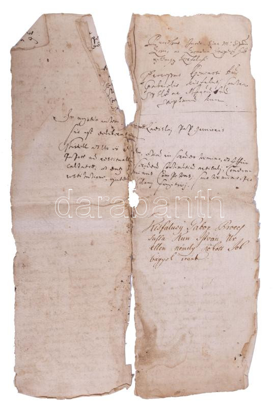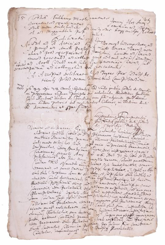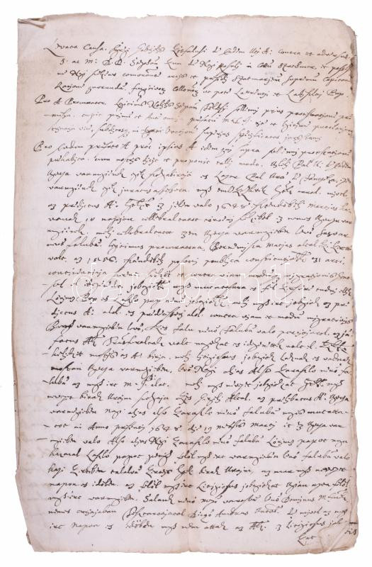 1649. Sept. 28. Sasvár Felvidék (Sastín, Slovakia), minutes of a lawsuit presented at the Ugocsa county court (sedria) between Gábor Kisfalusy and István Kun in the case of runaway serfs. Document in Latin and Hungarian, the case was countersigned by Kristóf Fejérpataky, county clerk. 10 written pages