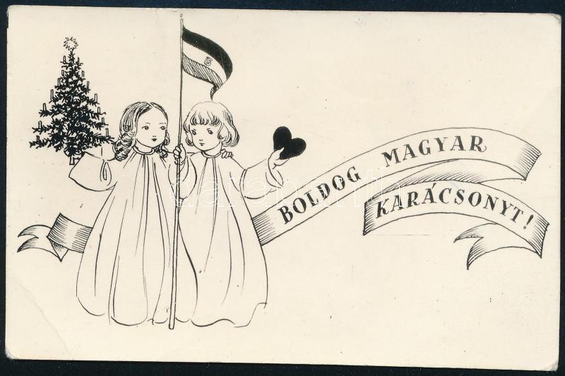 1956 Bp., Biczó Judit (1915-1987) grafikus, rajztanár autográf sorai karácsonyi üdvözlő kártyán, 5,5x9 cm