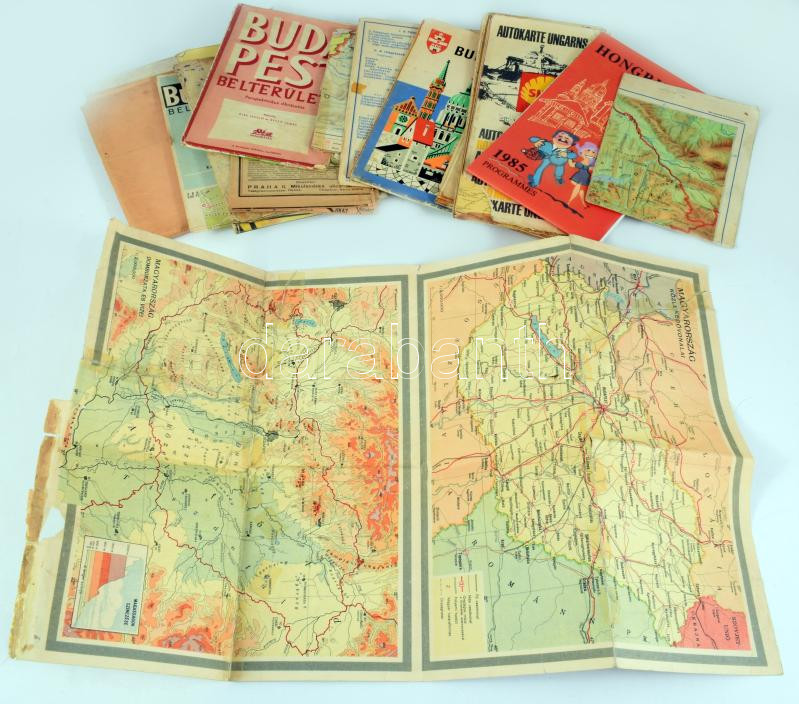 Vegyes térkép tétel (Magyarország autótérképe, Budapest térképek, A Börzsöny turistaútjai, stb.), 14 db