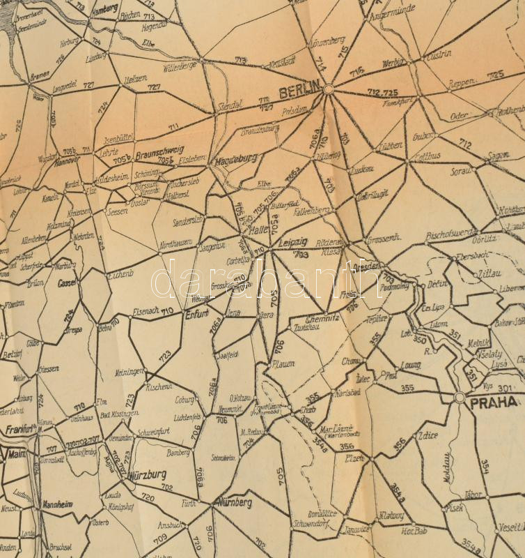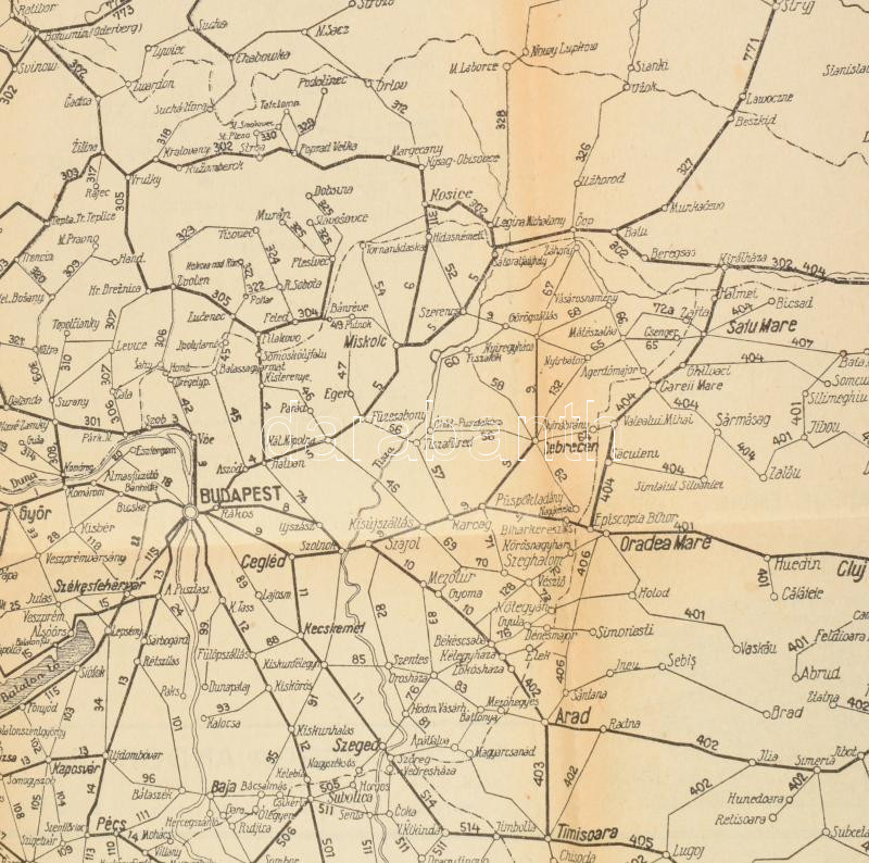 cca 1925 Középeurópa vasúti térképe és a magyar vasutak hálózata, kétoldalas térkép, reklámokkal, néhány kis lapszéli sérüléssel, 50x70 cm
