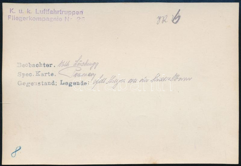 ca 1915 Pomorzany, Masovian Voivodeship Poland / Lengyelország, világháborús katonai légi felvétel pecséttel jelzett 18x14 cm