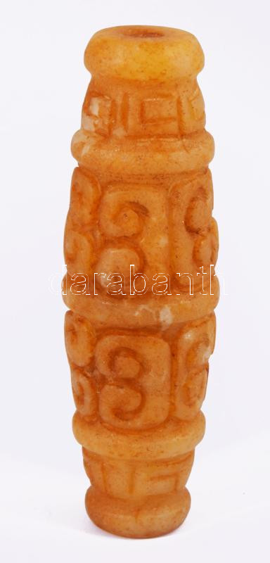 cca 18-.19. sz, Nagyméretű kínai faragott jáde gyöngy, h: 7 cm