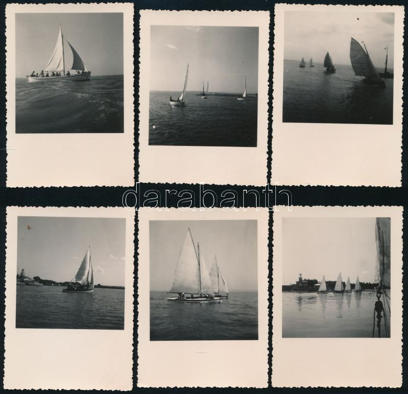 1936 Siófok, vitorlásverseny a Balatonon, 6 db fotó, a hátoldalon feliratozva, 8x6 cm