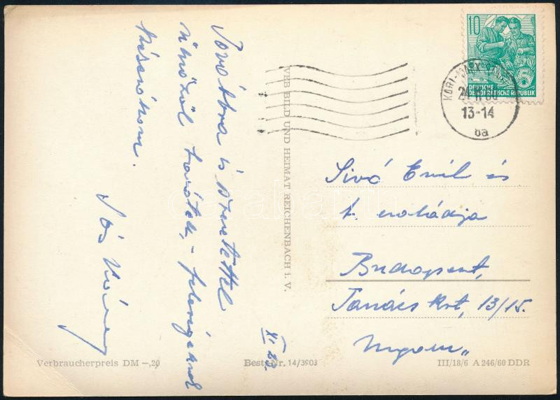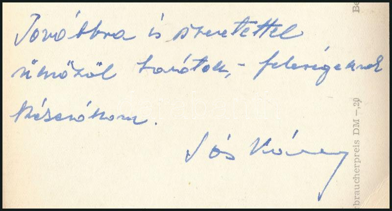 1960 Sós Károly (1909-1991) labdarúgó, edző és szövetségi kapitány autográf képeslapja Sívó Emil rendezőnek.