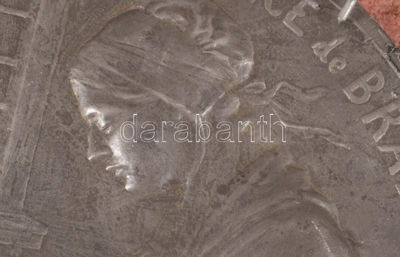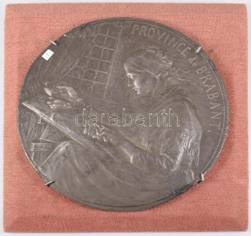 Godefroid Devreese (1861-1941): Dentelliére (Csipkeverő). Fém plakett, d: 25 cm, fa lapra applikálva 30x30 cm
