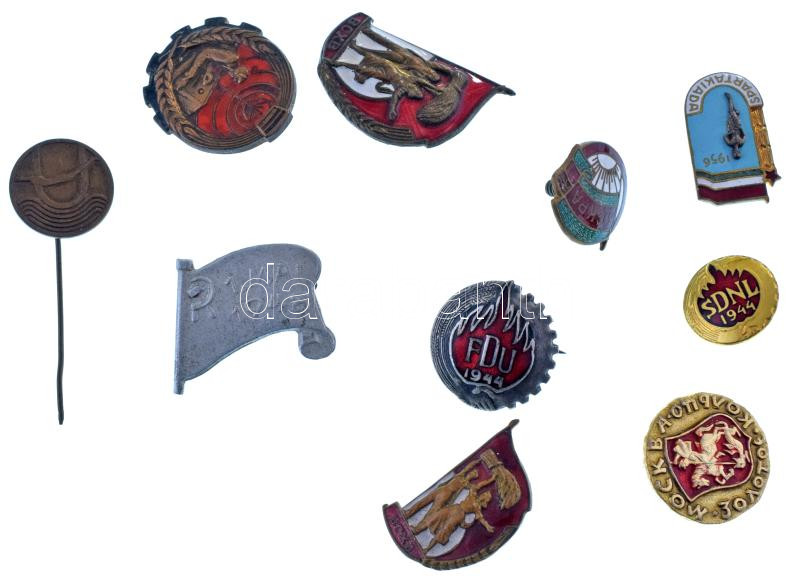 Vegyes, 10db-os szocialista jelvénytétel, közte zománcozott darabok T:vegyes, közte sérült