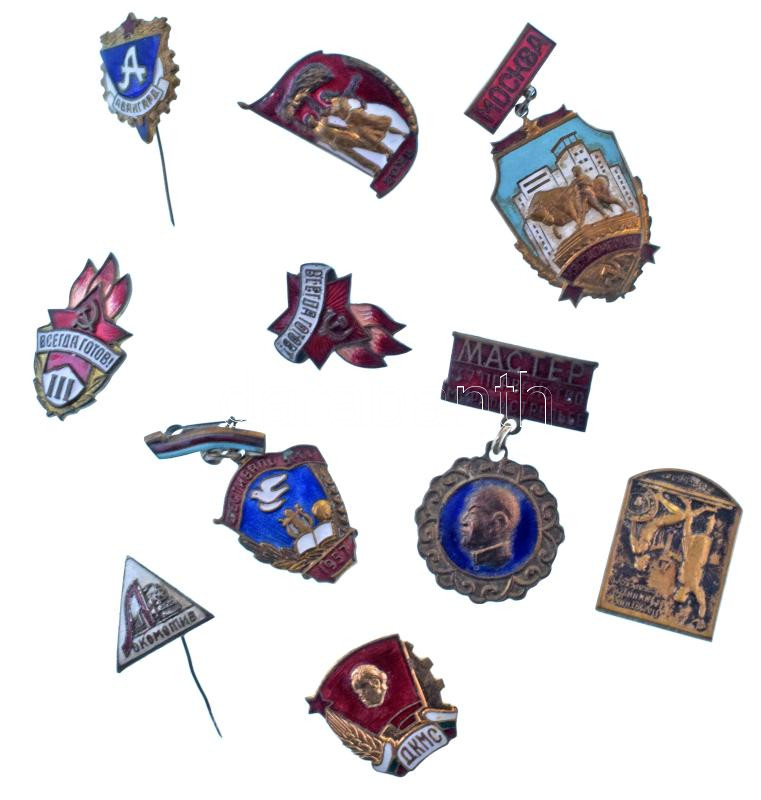 Vegyes, 10db-os szocialista jelvénytétel, közte zománcozott darabok T:vegyes, közte sérült