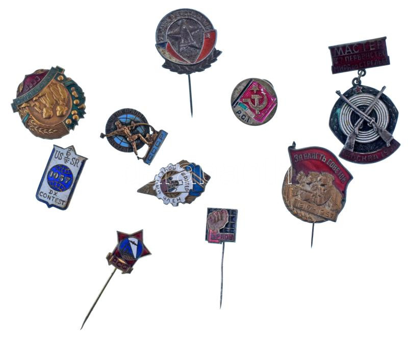 Vegyes, 10db-os szocialista jelvénytétel, közte zománcozott darabok T:vegyes, közte sérült