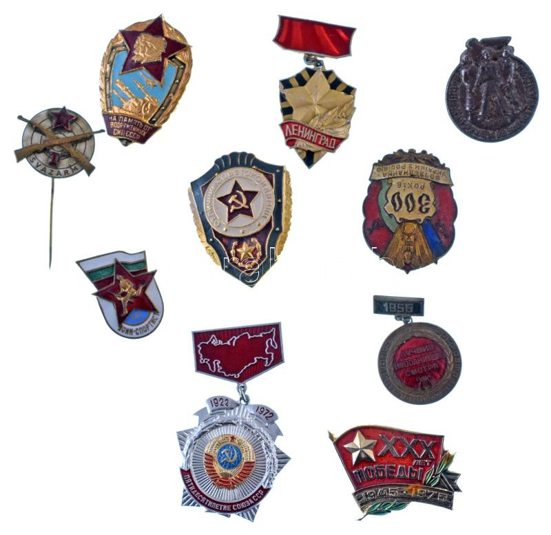 Vegyes, 10db-os szocialista jelvénytétel, közte zománcozott darabok T:vegyes, közte sérült