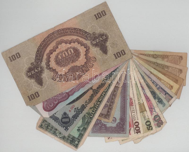 Vegyes, 15db-os magyar és külföldi bankjegytétel, benne: Ausztria, Németország, Szovjetunió, Lengyelország, Kambodzsa T:F-G