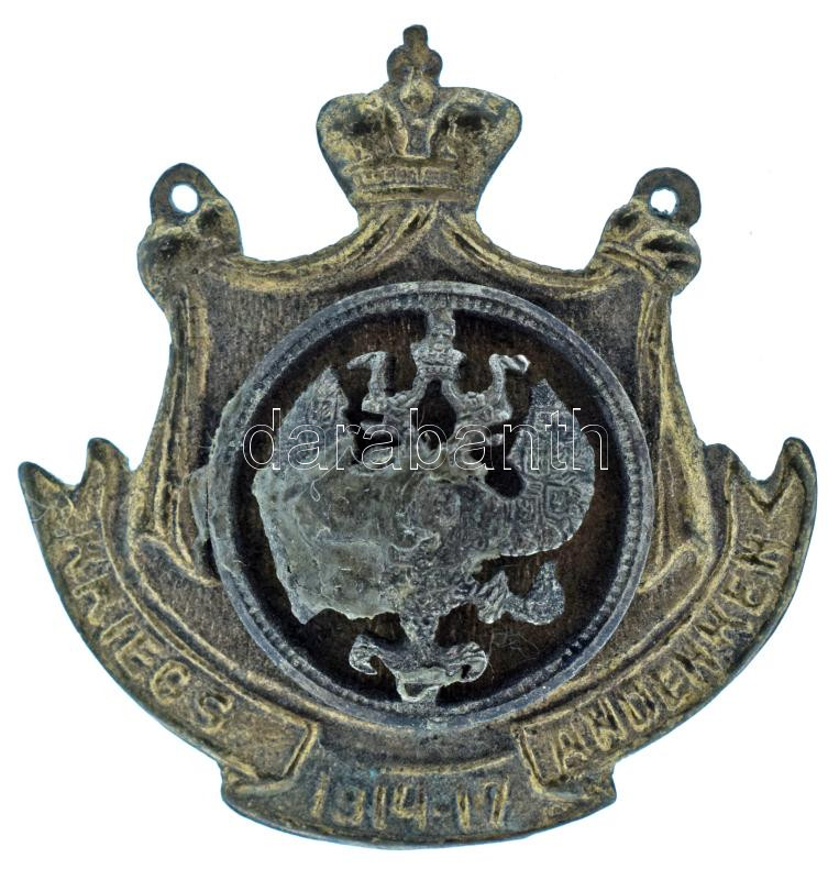 1917. "Kriegs andenken 1914-17" öntött bronz emlékérem, rajta körbevágott 10 kopekes érme címeres oldala (32x31mm) T:XF