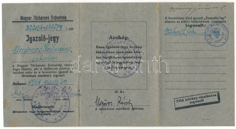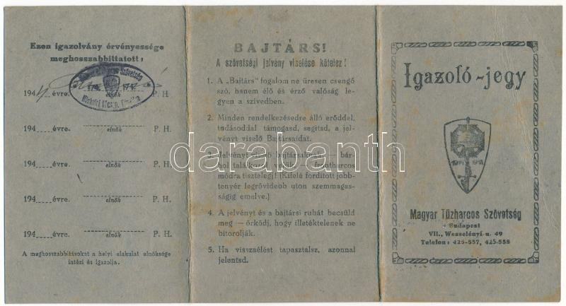 1944. "Magyar Tűzharcos Szövetség" igazoló-jegye, kitöltve, bélyegzésekkel T:F