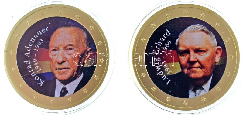Német Szövetségi Köztársaság 2020. "Die Kanzler und Präsidenten der Bundesrepublik Deutschland" sorozat két darab aranyozott, multicolor emlékérme: "Konrad Adenauer 1949-1963" és "Ludwig Erhard 1963-1966" mindkettő kapszulában (33mm) T:UNC