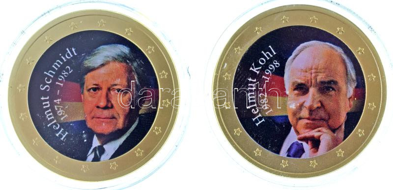 Német Szövetségi Köztársaság 2020. "Die Kanzler und Präsidenten der Bundesrepublik Deutschland" sorozat két darab aranyozott, multicolor emlékérme: "Helmut Schmidt 1974-1982" és "Helmut Kohl 1982-1998" mindkettő kapszulában (33mm) T:UNC
