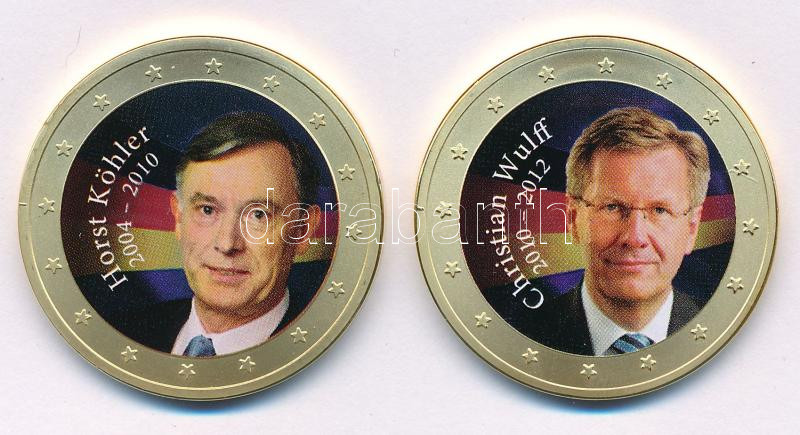 Német Szövetségi Köztársaság 2020. "Die Kanzler und Präsidenten der Bundesrepublik Deutschland" sorozat két darab aranyozott, multicolor emlékérme: "Christian Wulff 2010-2012" és "Horst Köhler 2004-2010" mindkettő kapszulában (33mm) T:UNC
