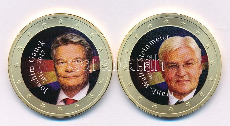 Német Szövetségi Köztársaság 2020. "Die Kanzler und Präsidenten der Bundesrepublik Deutschland" sorozat két darab aranyozott, multicolor emlékérme: "Joachim Gauck 2012-2017" és "Frank-Walter Steinmeier seit 2017" mindkettő kapszulában (33mm) T:UNC