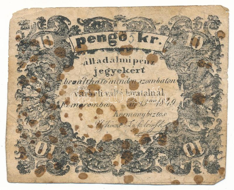 Hungary / Komárom 1849. 10 Kreuzer C:F,VG spotted