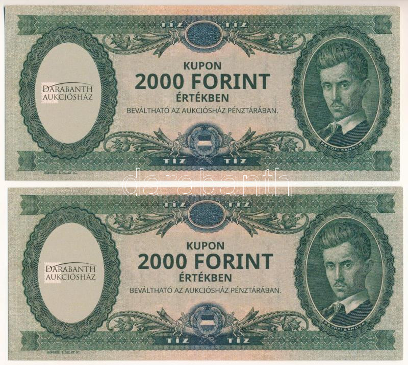 2023. "Darabanth Aukciósház" 2000Ft értékű, kuponja (2x) sorszámkövető "00072-00073" T:UNC