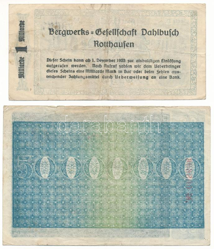 German Empire 1923. 50.000.000.000 Mark + 1.000.000.000 Mark C:F-VG
