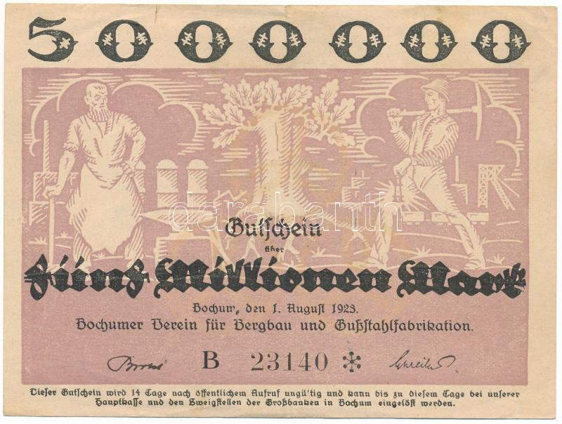 Germany / Weimar Republic / Bochum 1923. 5.000.000 Mark C:F,VG