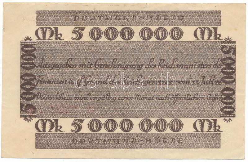 Németország / Weimari Köztársaság / Dortmund 1923. 5.000.000M T:F pici beszakadás