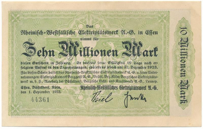 Germany / Weimar Republic / Düsseldorf 1923. 10.000.000 Mark C:F fine paper