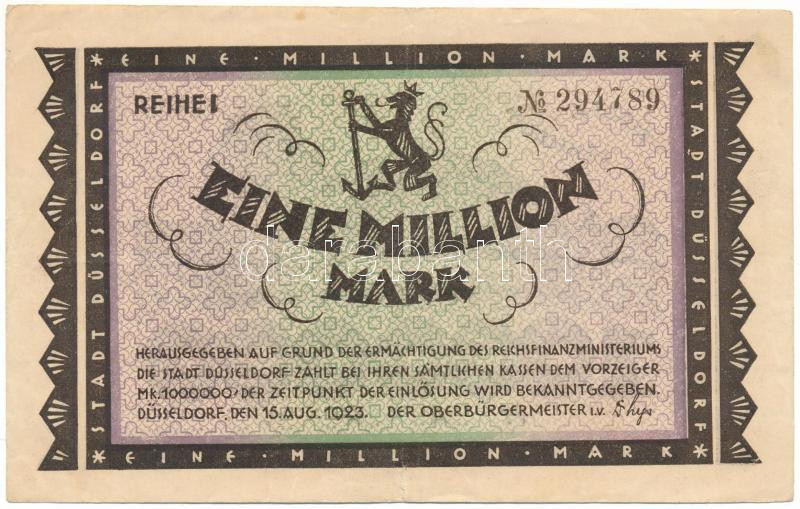 Németország / Weimari Köztársaság / Düsseldorf 1923. 1.000.000M T:F beszakadás